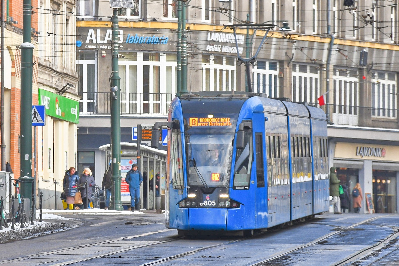 Słowa kluczowe: MPK Kraków, Bombardier, NGT8, RY805, linia 8, Basztowa, Kraków, małopolskie