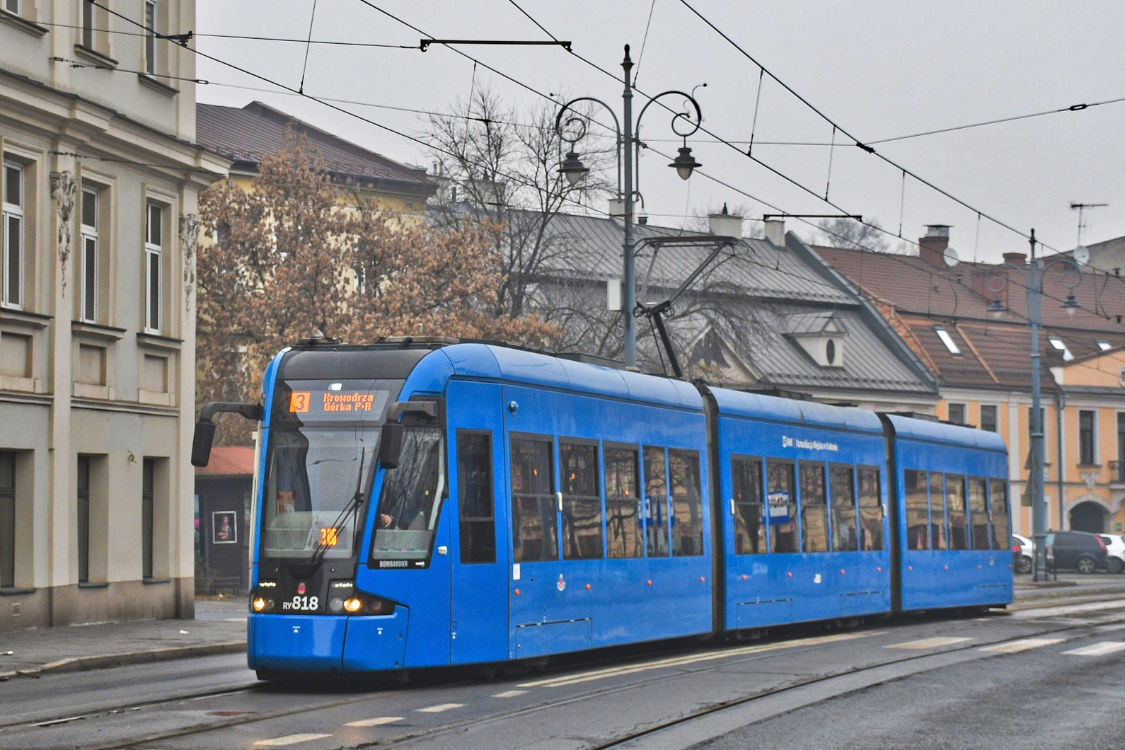 Słowa kluczowe: MPK Kraków, Bombardier, NGT8, RY818, linia 3, Rynek Podgórski, Kraków, małopolskie