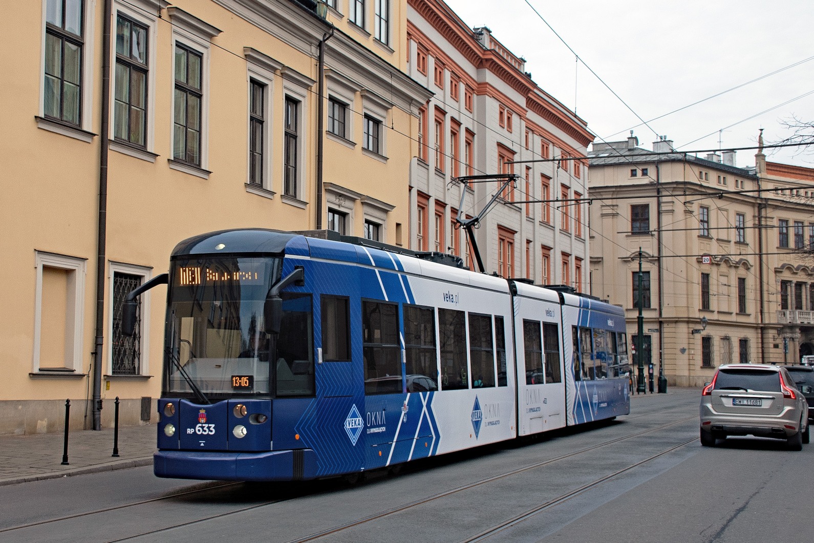 Słowa kluczowe: MPK Kraków, Bombardier, NGT6/III, RP633, Veka, linia 13, Franciszkańska, Kraków, małopolskie