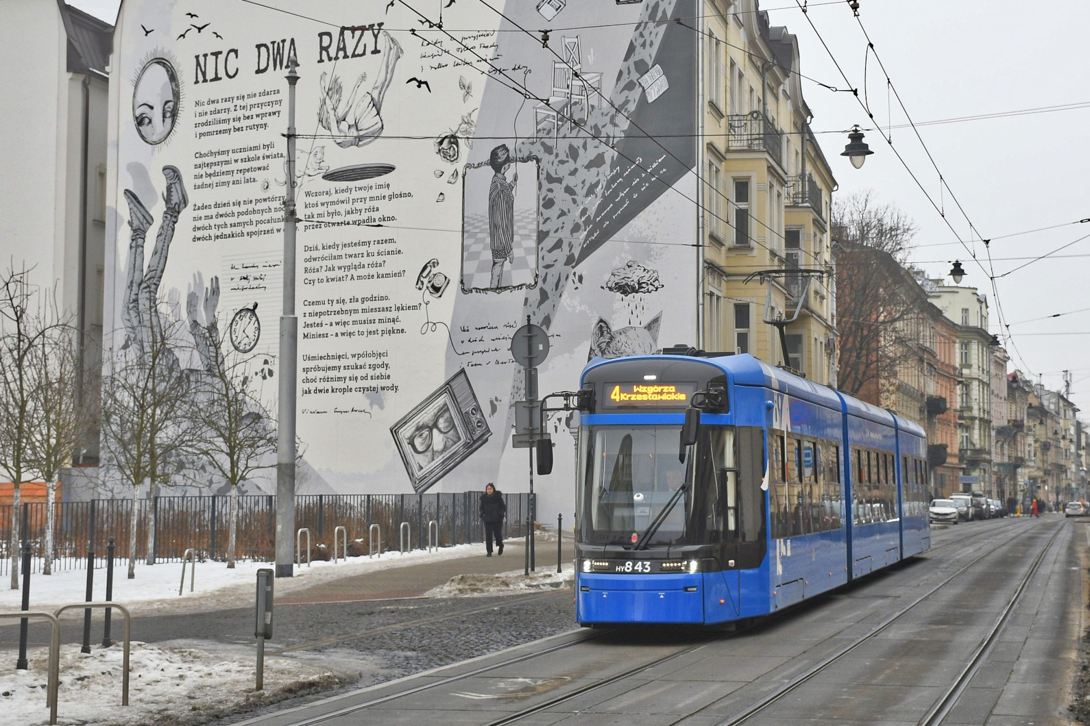 Słowa kluczowe: MPK Kraków, Stadler, Tango, HY843, linia 4, Karmelicka, Kraków, małopolskie