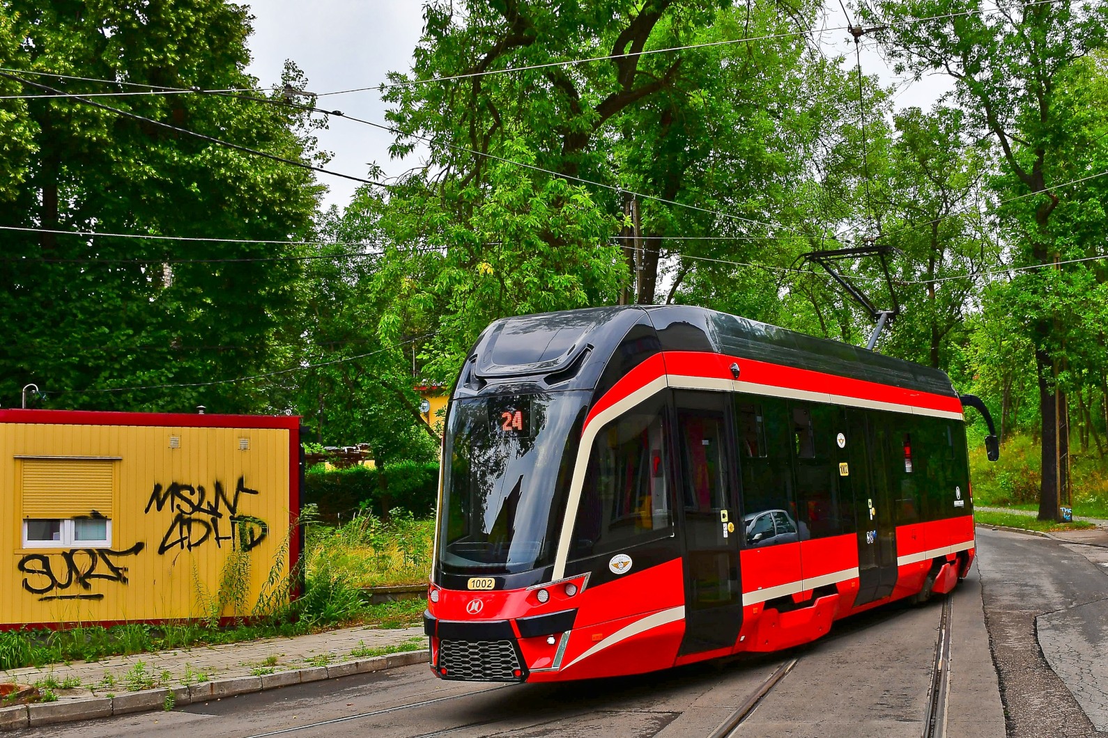 Słowa kluczowe: Tramwaje Śląskie, Moderus, Beta MF10AC, 1002, Sosnowiec, linia 24, Okrzei, śląskie